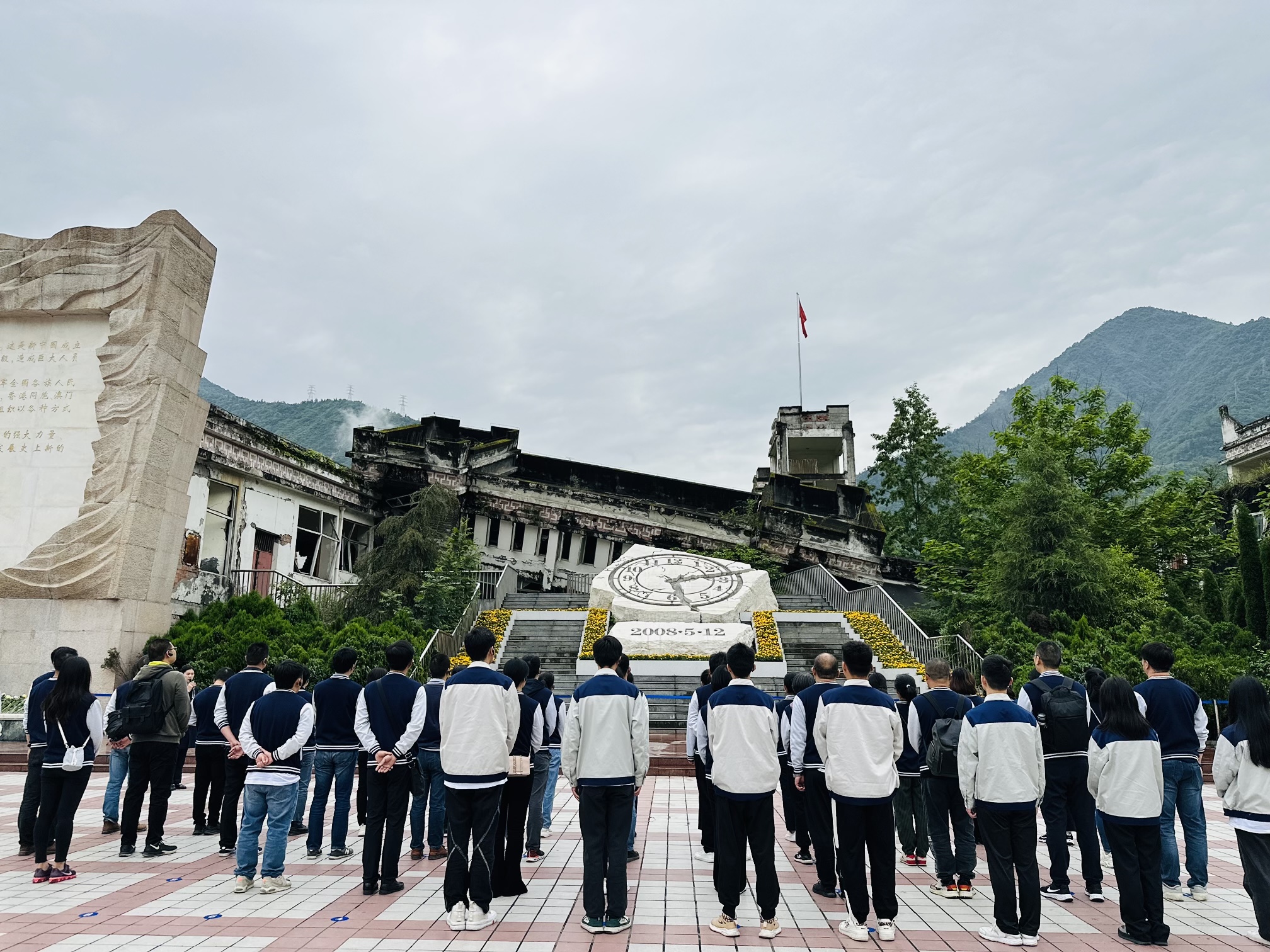 随后,全体同志参观了漩口中学地震遗址,面对残垣断壁的教学楼、碎裂的地震纪念表盘,大家神情肃穆,怀着沉重的心情向遇难同胞默哀、敬献鲜花。
