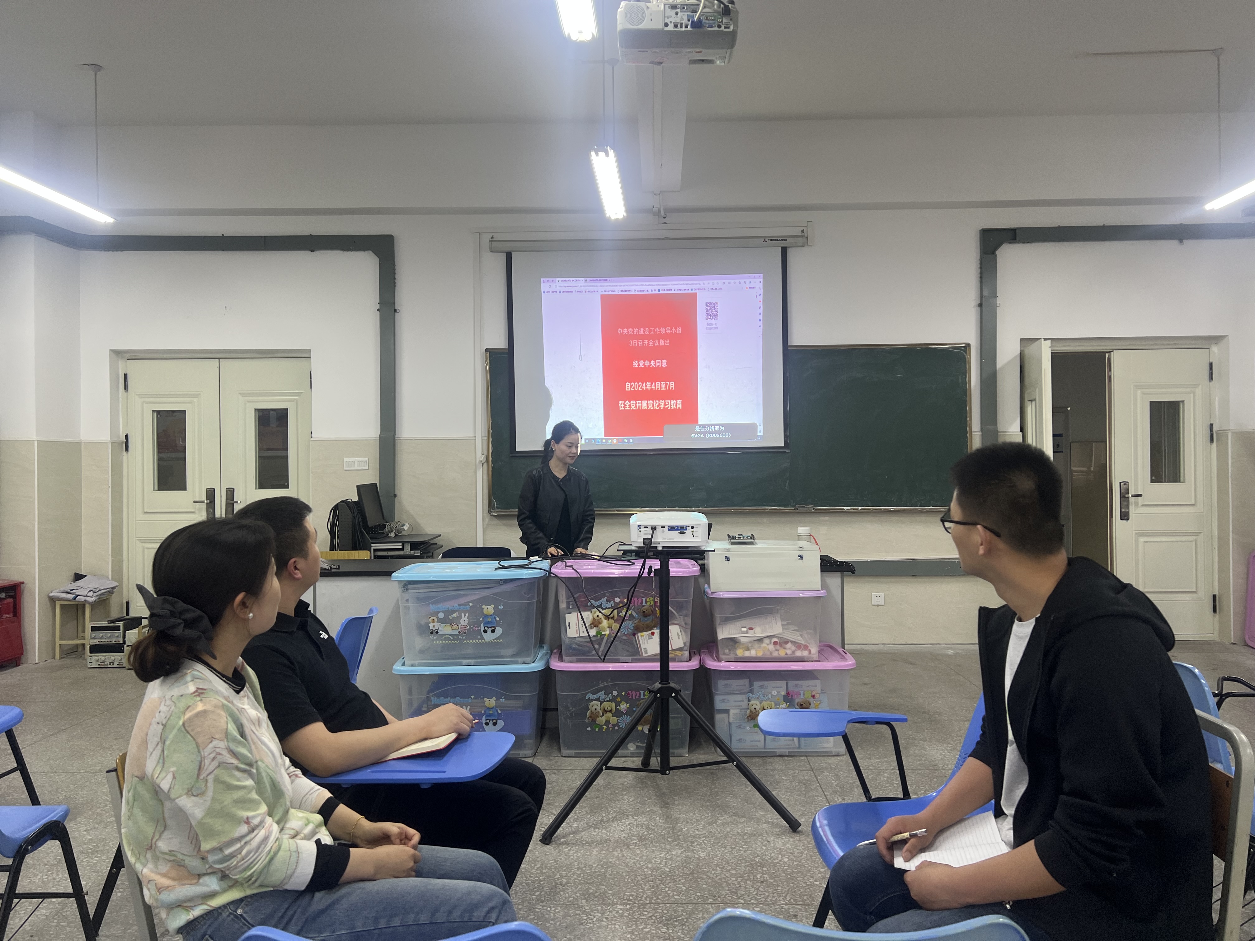 会上,各组学习了习近平在中共中央政治局第十一次集体学习时关于“新质生产力”的重要讲话,习近平总书记重要文章《时刻保持解决大党独有难题的清醒和坚定,把党的伟大自我革命进行到底》,习近平主持召开新时代推动中部地区崛起座谈会精神,《中国共产党纪律处分条例》,教育部党组书记、部长怀进鹏文章《奋力书写教育强国建设支撑引领中国式现代化的新篇章》,并收看了《学习为民善小而为》党课视频。