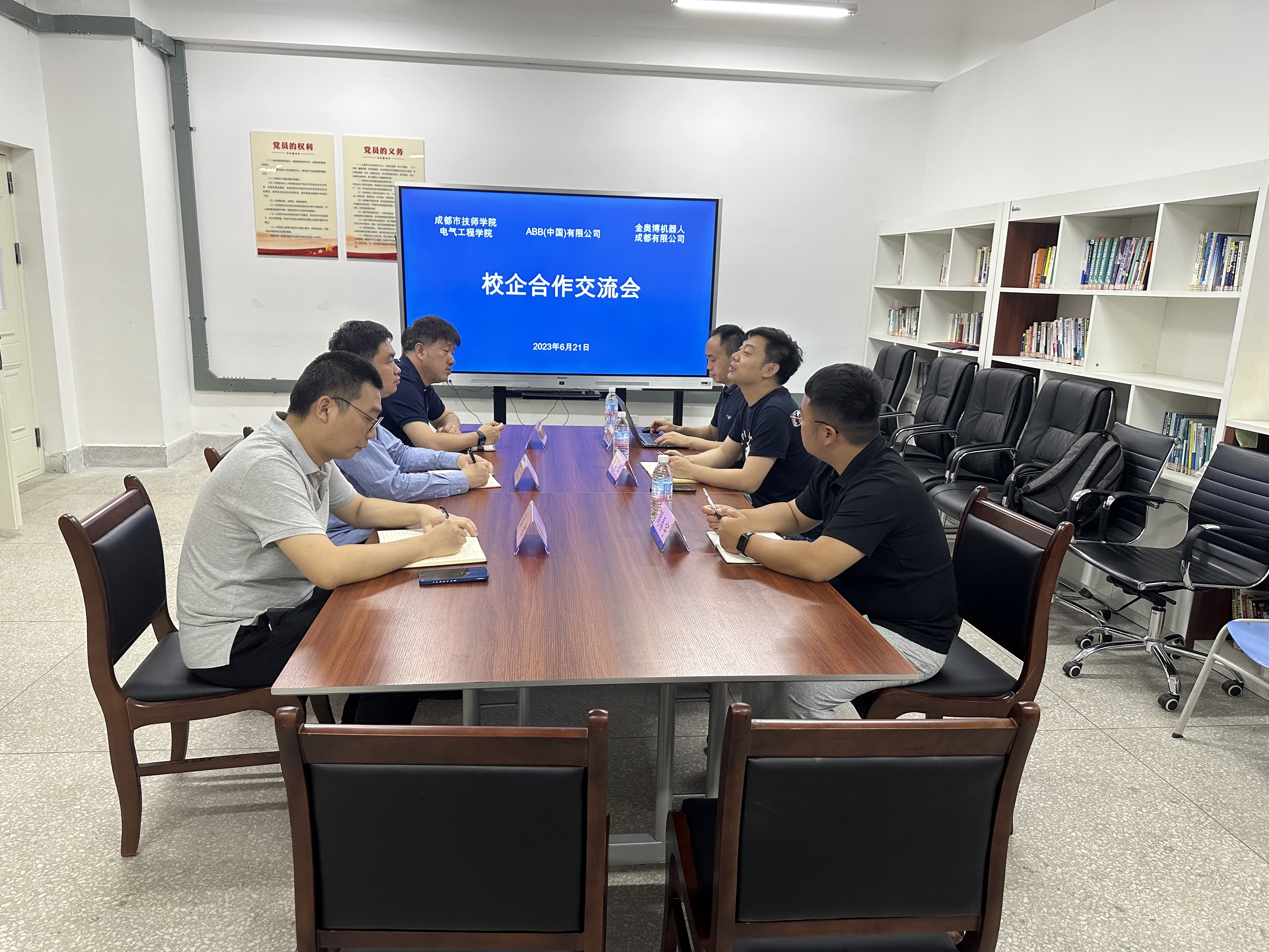 6月21日,ABB(中国)有限公司、金奥博机器人成都有限公司负责人等一行3人来公司开展校企合作交流。电气工程公司党总支书记、经理(主持工作)周皇卫、公司党总支副书记陈志欣、公司综合科科长秦都参加了本次座谈交流会。