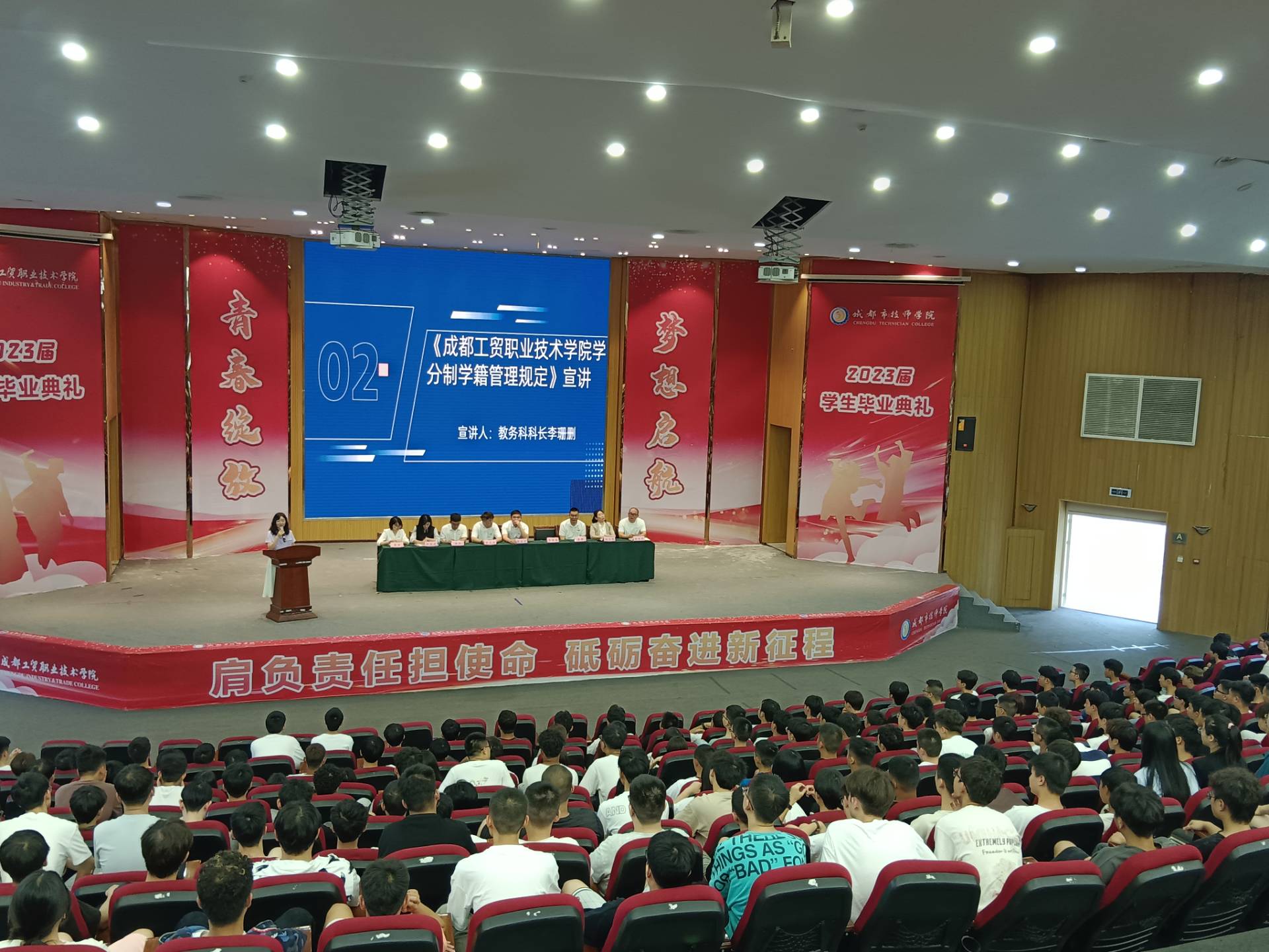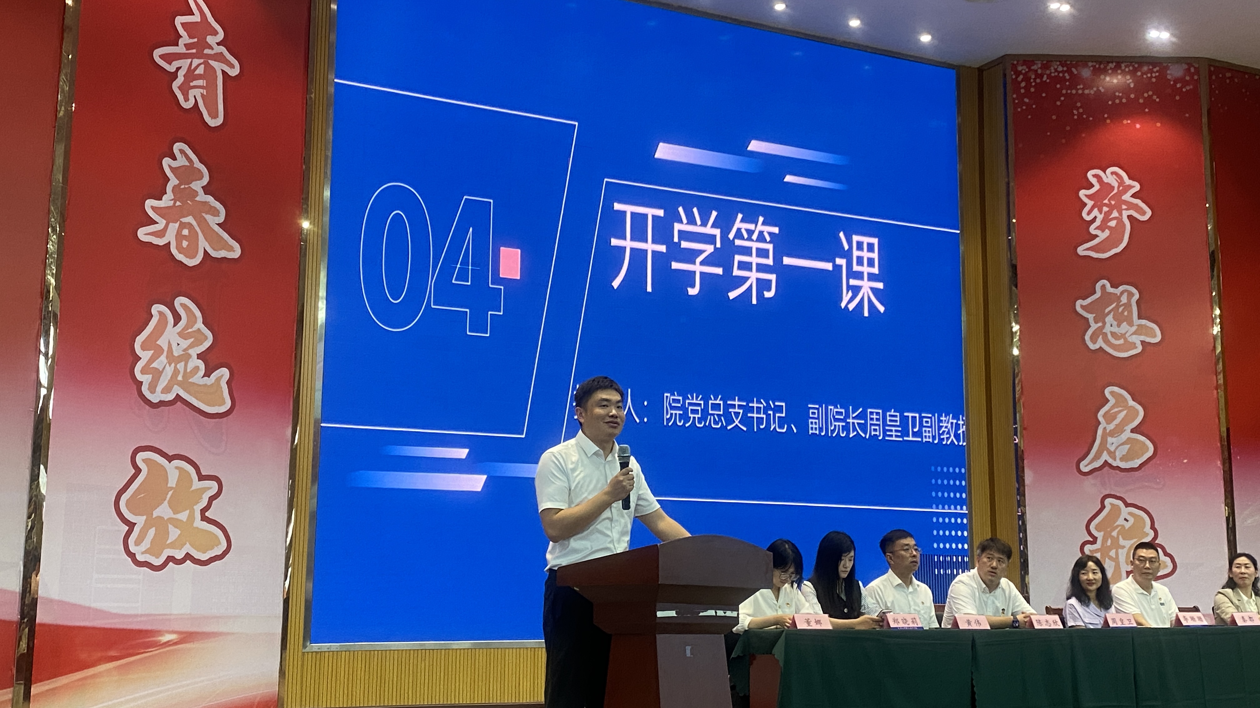 为切实做好2023级工贸新生入学教育工作,引导新同学们尽快适应新环境、新节奏、新生活,9月1日上午,太阳成集团tyc组织开展了主题鲜明、内容丰富的新生开学典礼暨“开学第一课”活动。公司党总支书记、副经理(主持工作)周皇卫副教授,公司党总支副书记陈志欣副教授、党总支宣传委员、教务科科长李珊珊老师,党总支青年委员、综合科科长秦都老师,员工支部青年委员、员工科科长黄伟老师,教师代表冯玉华副教授以及工贸23级辅导员参加活动。