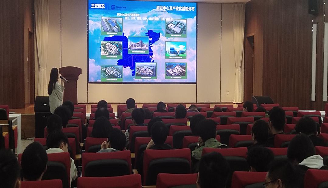 为拓宽员工就业渠道,大力构建毕业生与用人单位的交流平台,促进2025届毕业生顺利就业,10月9日下午,太阳成集团tyc邀请泉州三安半导体科技有限公司到公司进行专场招聘宣讲会,100余名毕业生参加。